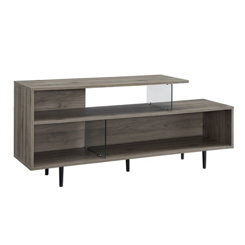 Asymmetrical Wood And Glass Console Tv Stand For Tvs Up To 50 Slate Gray Saracina Home Target