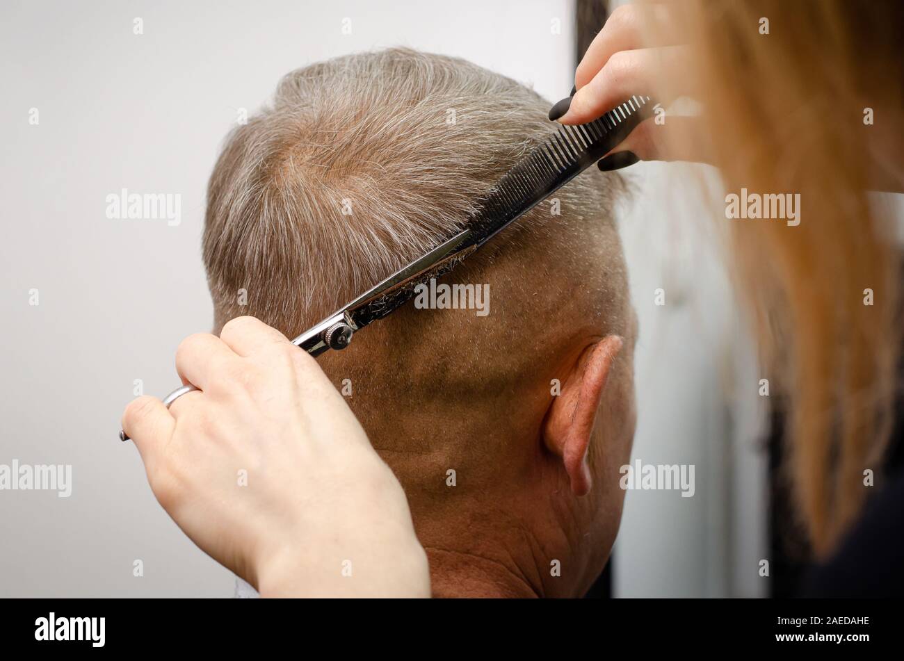 Close Up Of Short Male Haircut Process Foran Elderly Man In A Barbershop Stock Photo Alamy