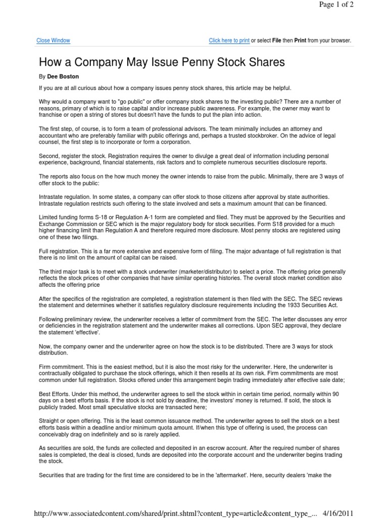 How A Company May Issue Penny Stock Shares Underwriting Stocks