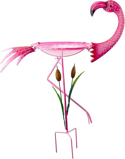 Amazon Com Red Carpet Studios 40271 3d Metal Glass Bird Bath Flamingo Garden Outdoor