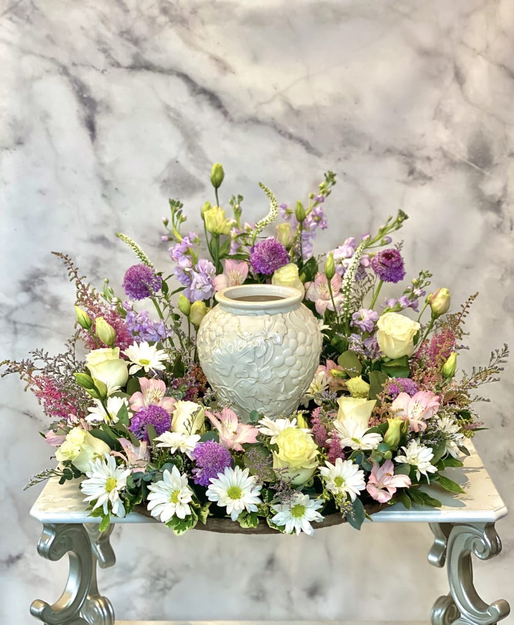 Pastel Sympathy Urn Arrangement By Lauren Quinn Flower Boutique
