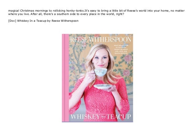 Reese Witherspoon knows how to throw a great party. In Whiskey in a Teacup Reese shares deeply personal stories about her life in the South and offers up her best advice on entertaining and life in general yes theres even a detailed description on how to hot roller your hair Reese Witherspoon style. Local Southern chefs discuss how their heritage flavors their food.