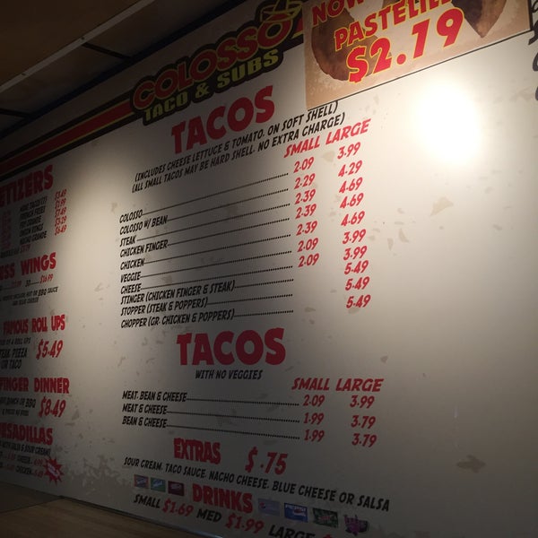 Colosso taco menu. Tacos with no Veggies Pastelillos. This place provides food delivery for the convenience of its customers. Colosso Taco Pizza Express.