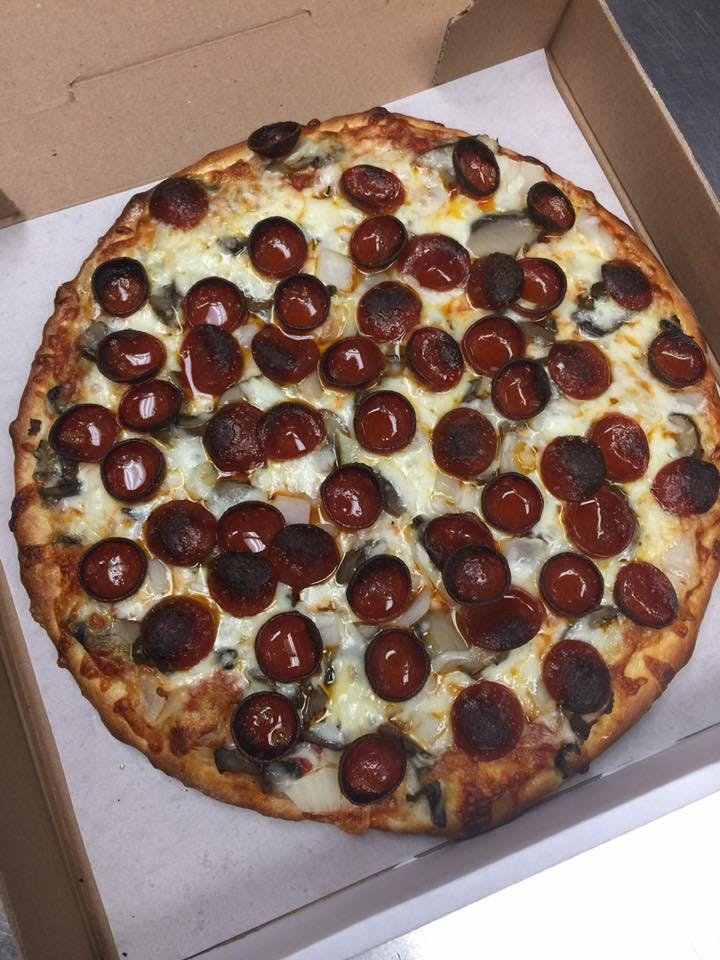 Our specialty seasoned taco meat taco sauce a light layer of bean American Swiss cheese black olives baked on a crispy pizza crust topped with fresh lettuce. Pizza Mexican. Imported 100 Olive Oil Garlic Salt Pepper Oregano Fresh Grated Romano Cheese Mozzarella Cheese Topped With A Crisp Sliced Onions Fresh Whole Tomatoes.