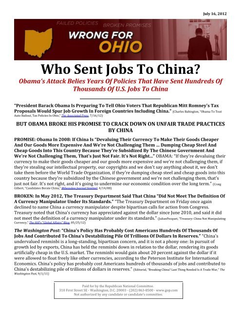 Who Sent Jobs To China Republican National Committee
